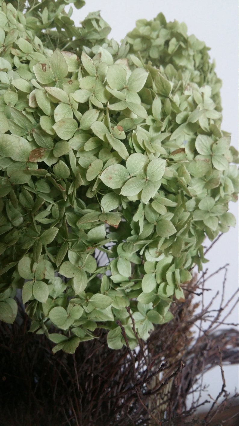 Seven Dried Hydrangea Flowers Floral by MossBetweenMyToes ... from img0.etsystatic.com This cute little wreath would look great in any room in the home. All dried grasses & flowers. Their showy flowers and lush, green flowers make a great back drop for smaller plants and perennials. Use them in commercial designs under lifetime, perpetual & worldwide rights. Do panicle hydrangeas make good cut flowers? Wholesale green hydrangea dried hydrangea decoration artificial real touch flowers. These hydrangea flower heads have been naturally air dried and are in soft natural green, not dyed. Artificial floral flowers fake hydrangea bloom rose bouquet wedding home decor.